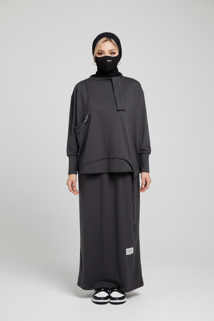 ✨ Un effet deux pièces grâce à une superposition asymétrique qui donne l’illusion de porter un haut sur une jupe, ajoutant de la profondeur et du caractère à la tenue.